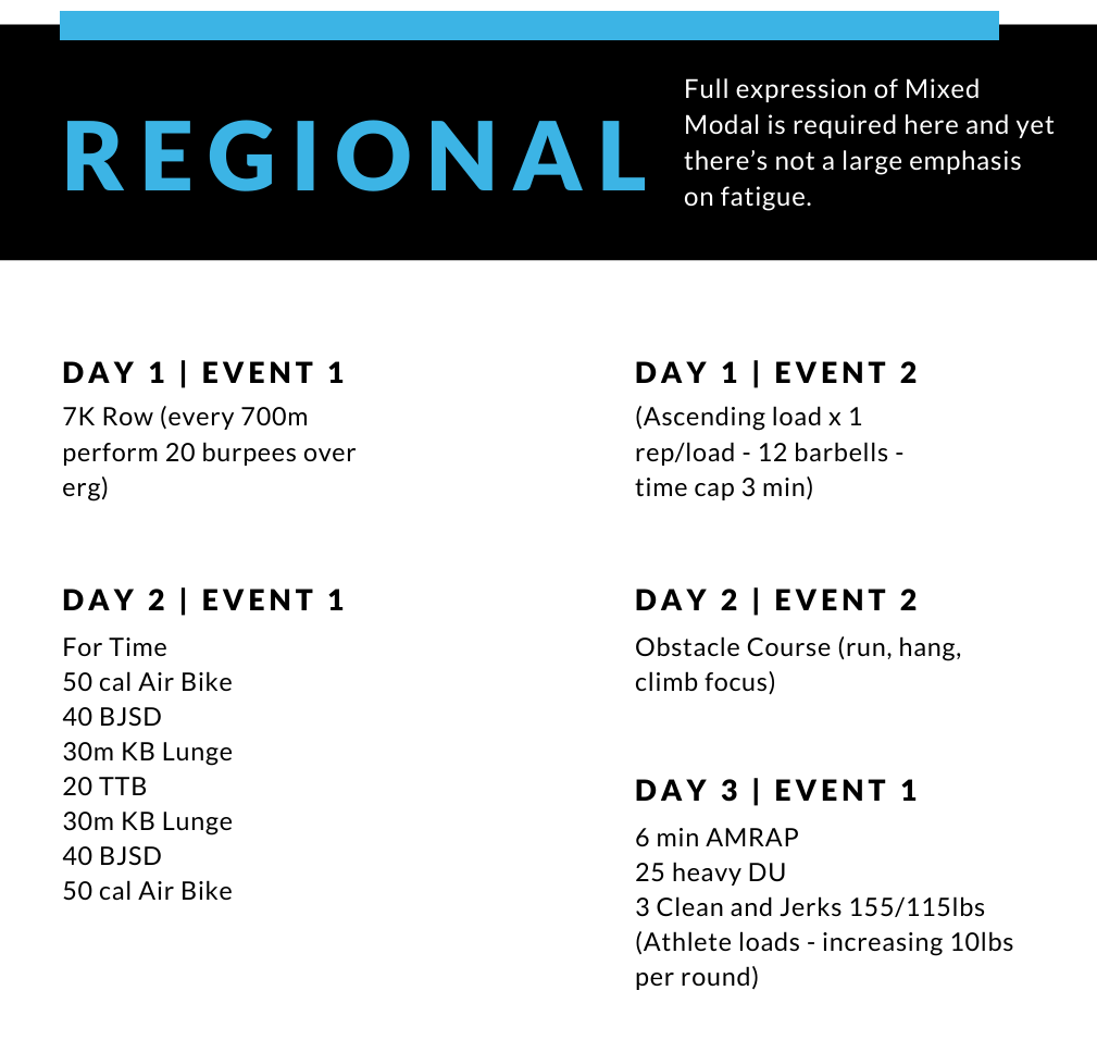 Regionális (Regional): itt már a vegyes módozatú fittség teljes kifejezésére szükség van, de még nincs nagy hangsúly a fáradtság felgyülemlésén!
